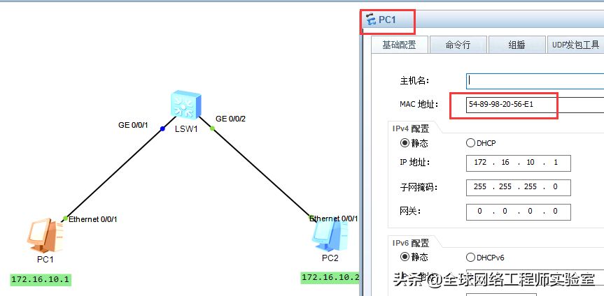 1、我们组建一个基础入门的局域网,查看交换机MAC地址表