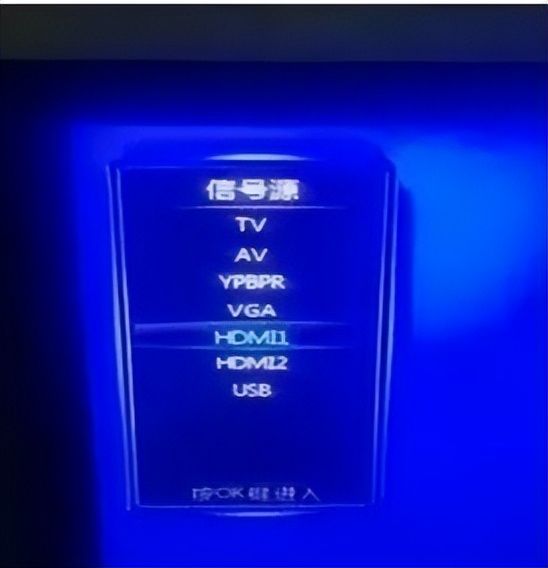 请找到电视机的遥控器,在上面找到“视频源”、“TV/AV”、“信号源”、“HDMI”等字样的按键,其中必有一个能让你看到图像。