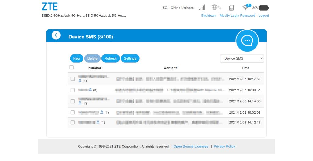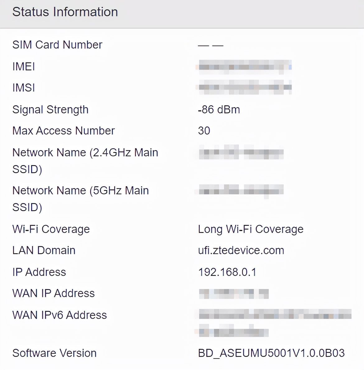 ZTE MU5001自带有丰富的Web管理页面,你可以通过浏览器直接登入MU5001后台,进行设置和管理MU5001,默认的管理员密码在电池仓底部标签。