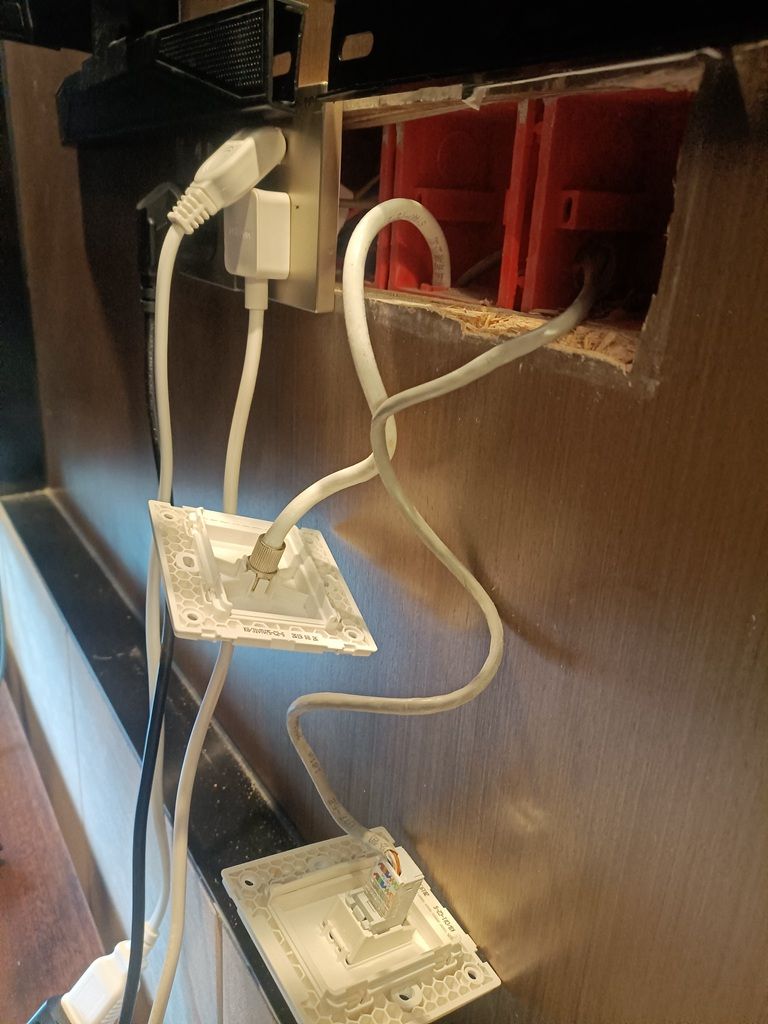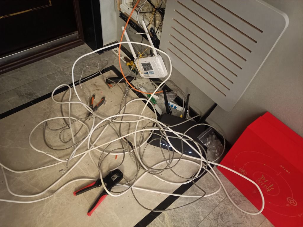 给精装房更换网络并不是一件复杂的工程,但是却有一定的技术含量。从入户多媒体盒到电视背景墙,网线和闭路电视线在同一根PVC管子里,要么插一根光纤过去,要么把两条旧线拉出来,换上新线。最后我选择,把两根旧线拉出来,同时把新网线顺进去。闭路电视线不用也罢,反正现在也没有人看。