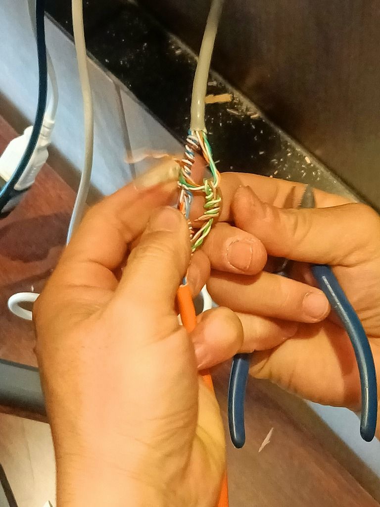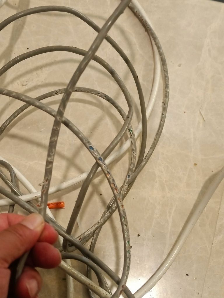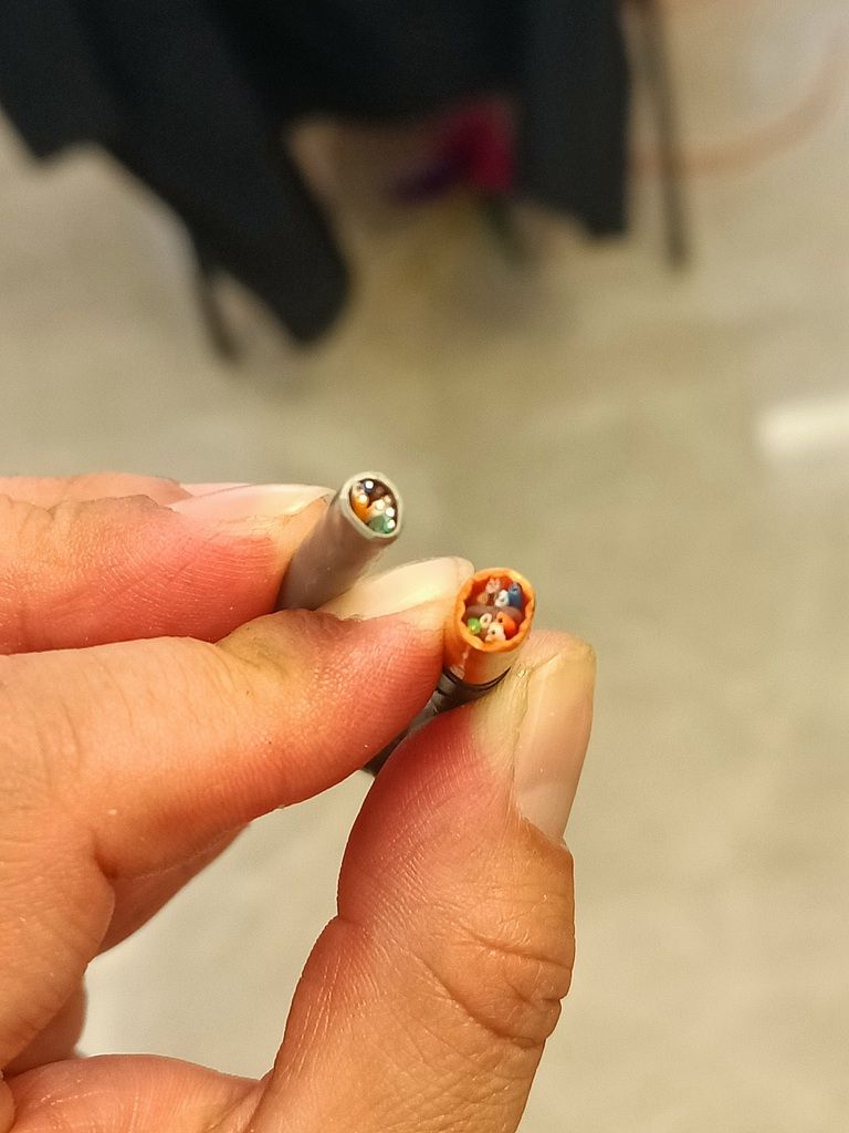 通过结合处看到,新网线和旧网线的对比。新网线品牌是日清,通过某论坛上知道这个牌子的,质量不错,超六类可以实现万兆速度。
