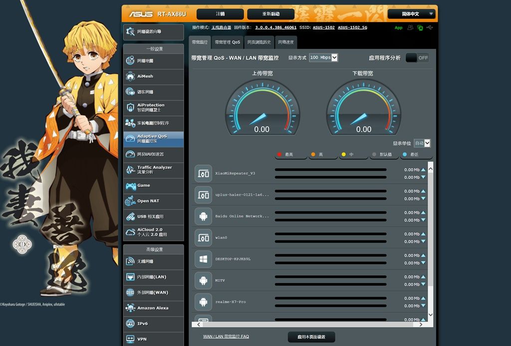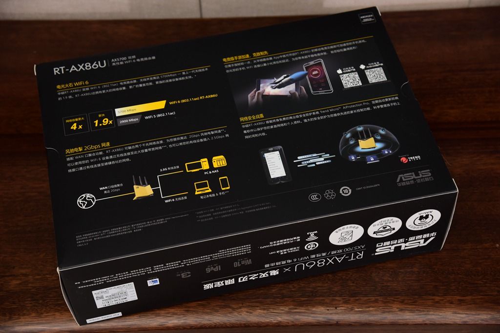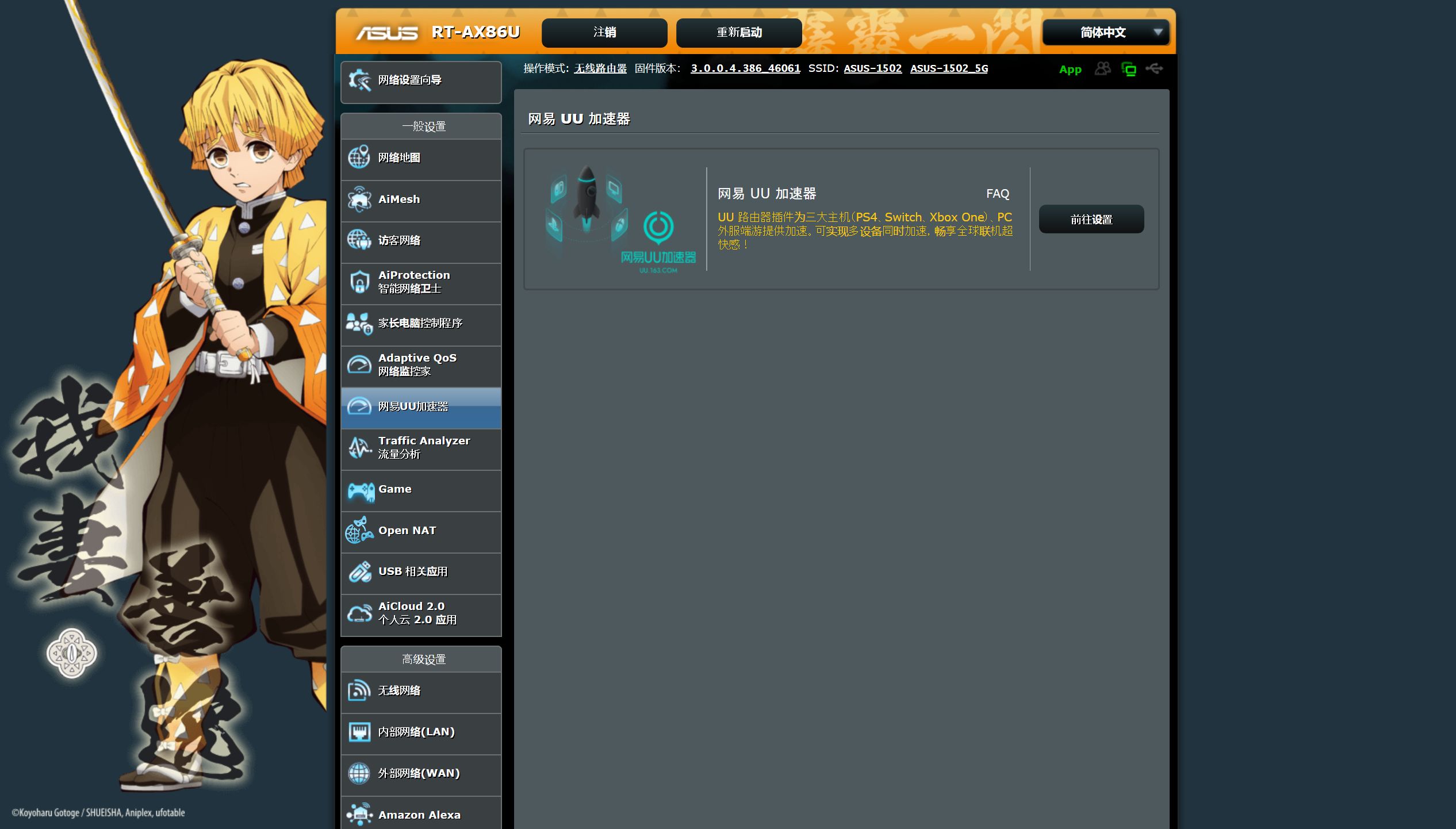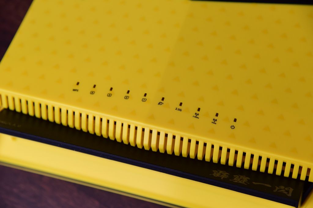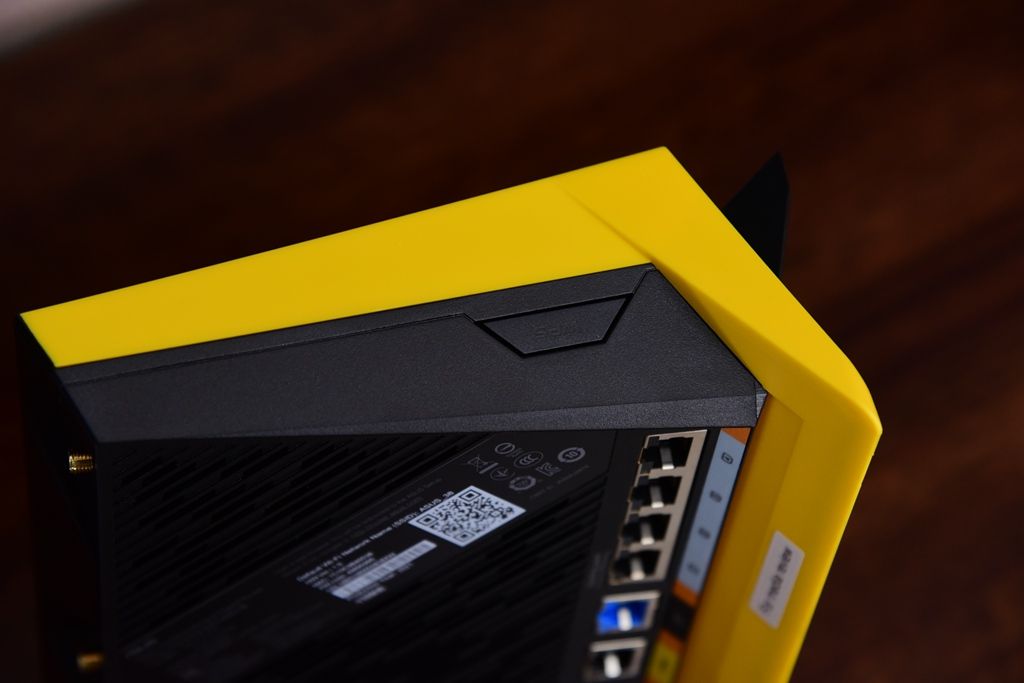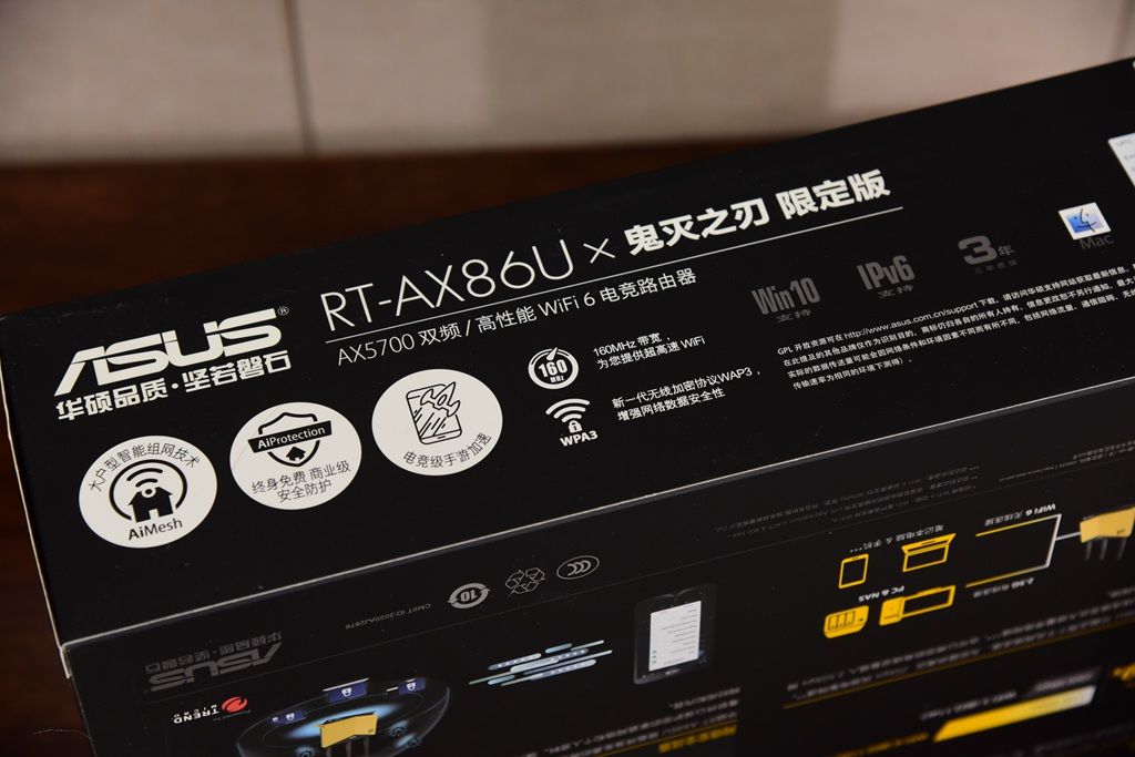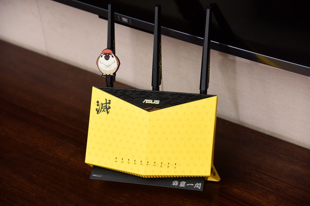 华硕AX86U鬼灭之刃限定版,整个路由的风格是偏向卡通的亮黄色,非常可爱。AX86U的CPU为4核心的博通BCM4908,每颗频率为1.8GHz,拥有1GB RAM和256MB ROM。
