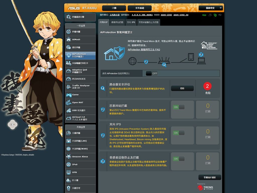 《鬼灭之刃》是日本漫画家吾峠呼世晴所著的少年漫画,AX86U鬼灭之刃限定版以我妻善逸为设计原型,融入了大量人物标志性明黄配色和衣服上三角形装饰,从包装到产品再到软件均与我妻善逸深度结合。