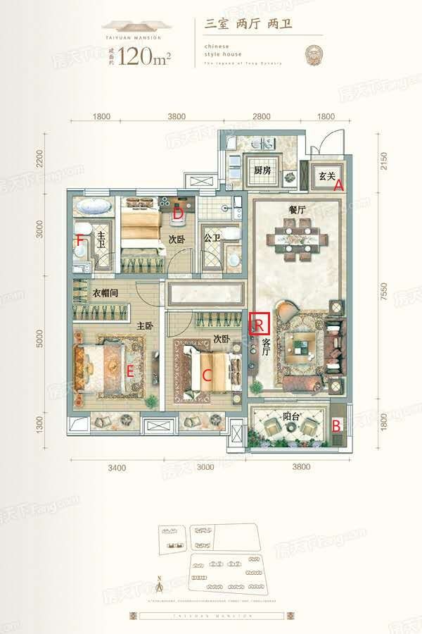 买这套房子虽然是冲动,但是也是为了改善一下居住条件。当时居住的是一套两室两厅的房子,孩子慢慢长大了,也没有自己独立的房间,家里来个老人,也没有住的地方。新房子的户型也是我比较中意的,有了余钱,就应该让生活水平逐渐提高,其实这一套三室两厅的房子其实并不后悔。房屋建筑面积120平,使用面积92平。户型图如下:(A、B、C、D、E、F为测速点,R为路由器摆放在电视柜上的位置)