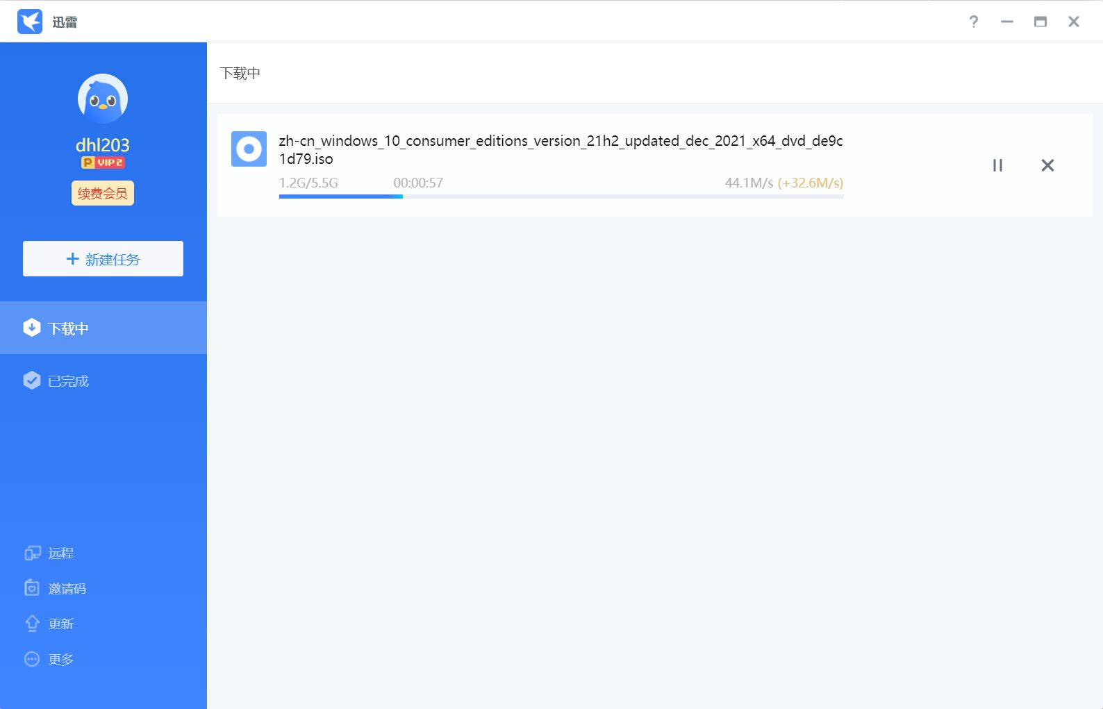 本人目前使用的NAS是群辉DS218,已经安装了迅雷套件。DS218只有千兆接口,NAS和路由通过千兆连接,下载WIN10镜像的速度也保持在45MB/S左右,用时不到90秒,基本跑满整个宽带,非常满意。