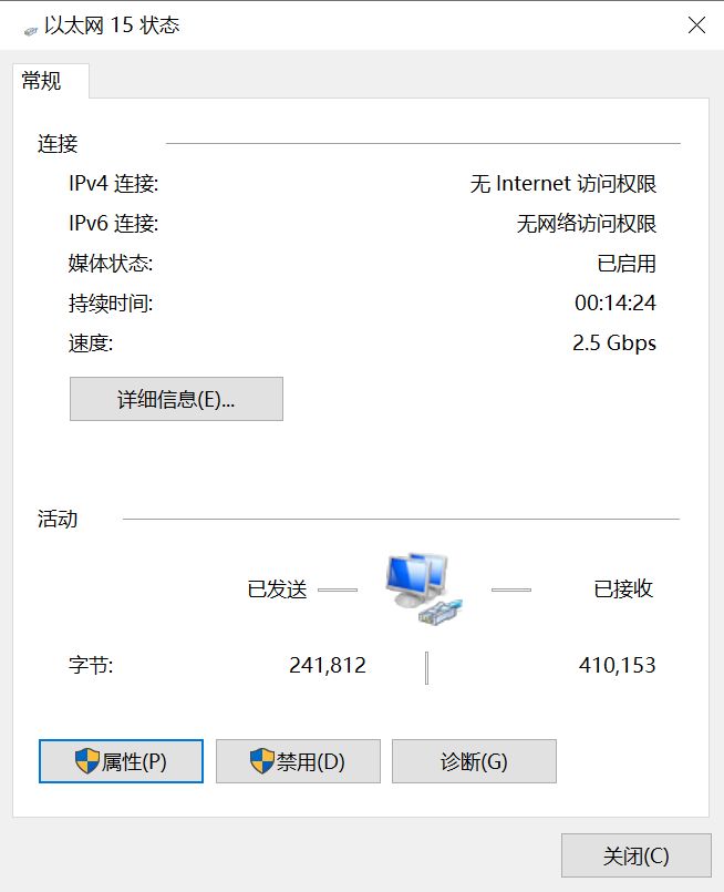 连接完成后,有线连接为2.5G,无线连接为2.4G