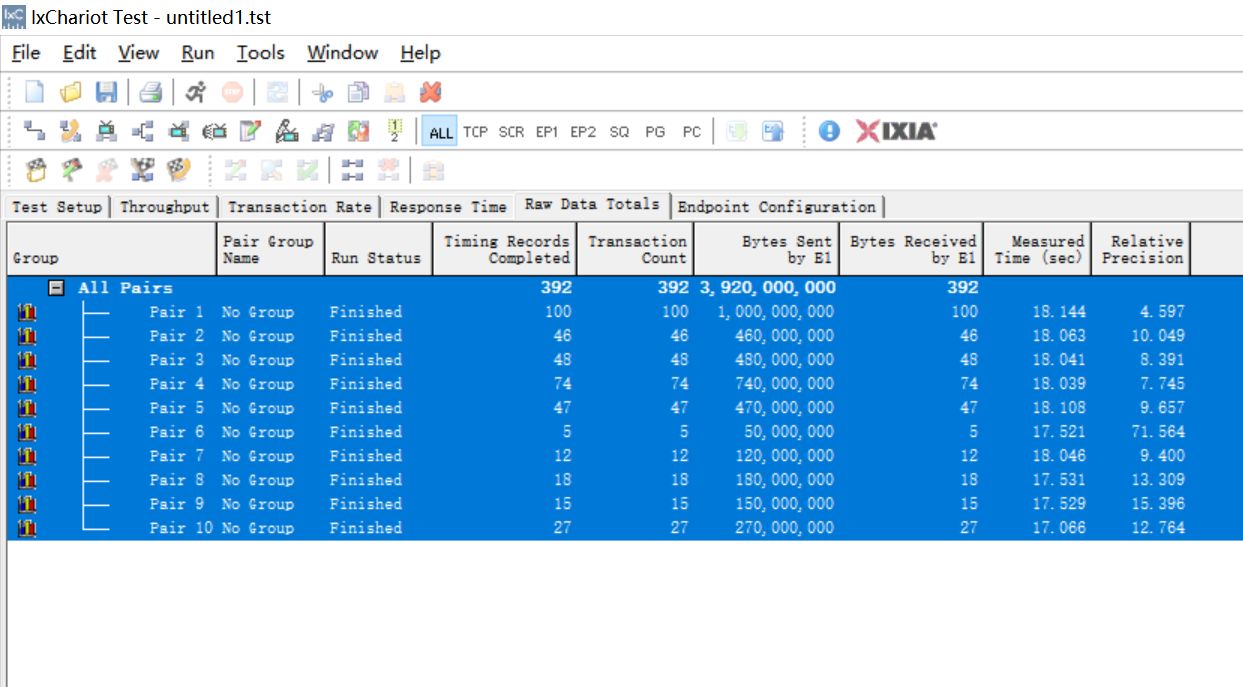 模拟正常使用情况下,使用IXCHARIONT 6.7和ENDPOINT 7.1进行打流测试。