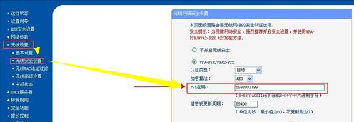 点击左侧的 无线设置 — 无线安全设置,修改无线网络的加密方式和加密密码,保存即可。