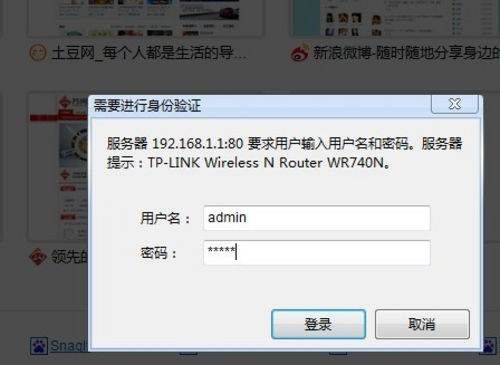 第一步:连接好无线路由器后,在浏览器输入在路由器看到的地址,一般是192.168.1.1(当然如果你家是用电话线上网那就还要多准备一个调制调解器,俗称“猫”)。输入相应的账号密码。