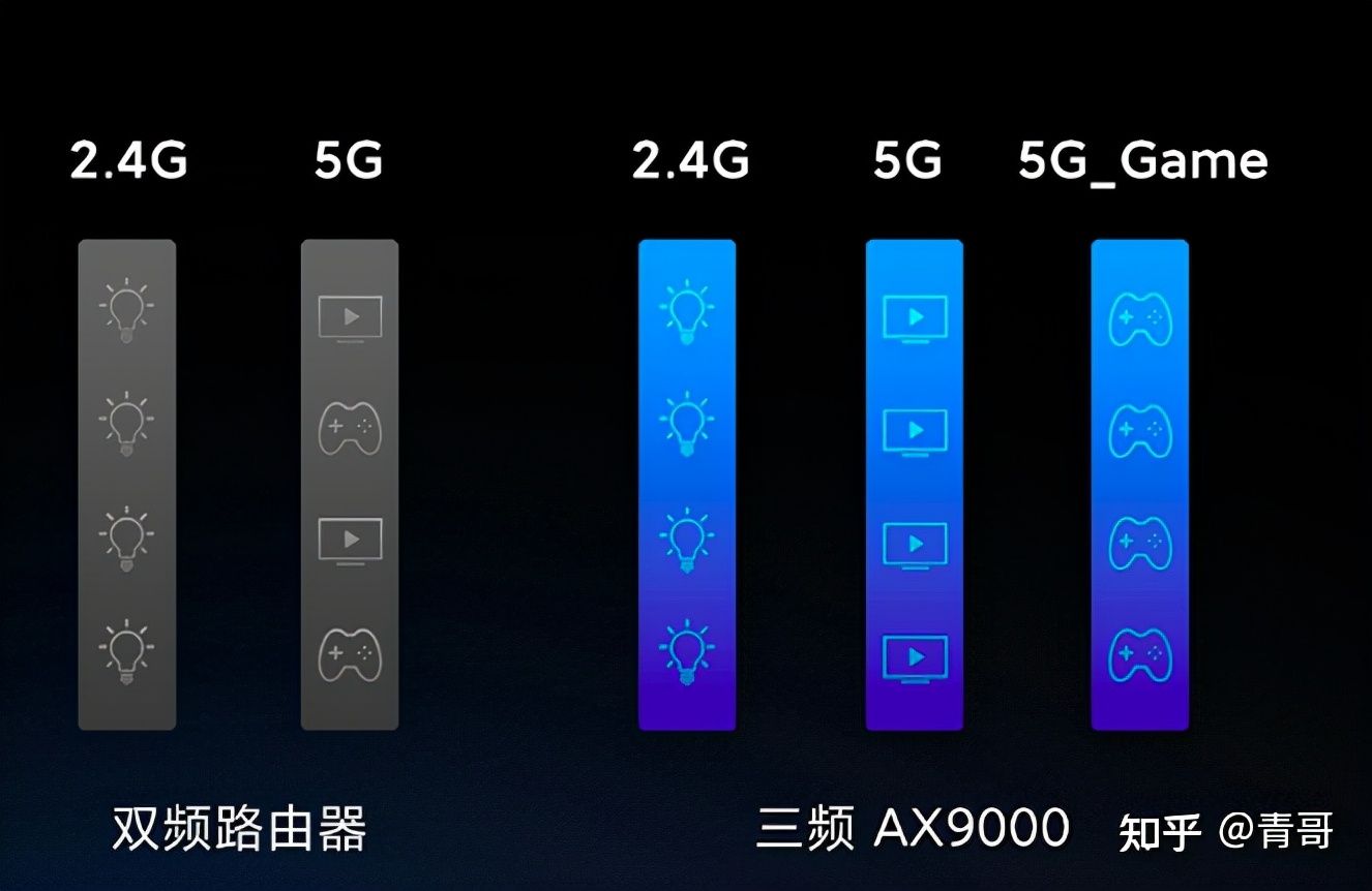 网络在传输的时候会占用一定的带宽,所以,如果是三频路由器,就可以有一条线专门用来传输数据,一条线用来连接手机和电脑,剩下的2.4g用来单独作为智能家居线路。