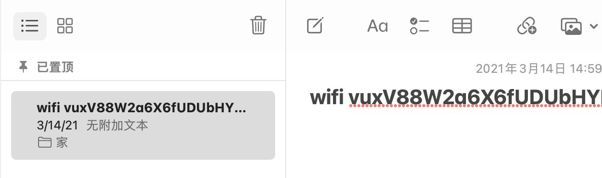 当然了能给大家展示出来,是因HY后面还是有很长的一段字符。记得住吗?真的是记不住,这个密码被iN放在了自己的备忘录里面。备忘录丢了数据也没什么问题,这段字符是根据“有花堪折直须折,莫待无花空折枝”这两句话在特定的算法生成的。只要iN还记得这句人生至理名言,这段密码就可以随时恢复出来。