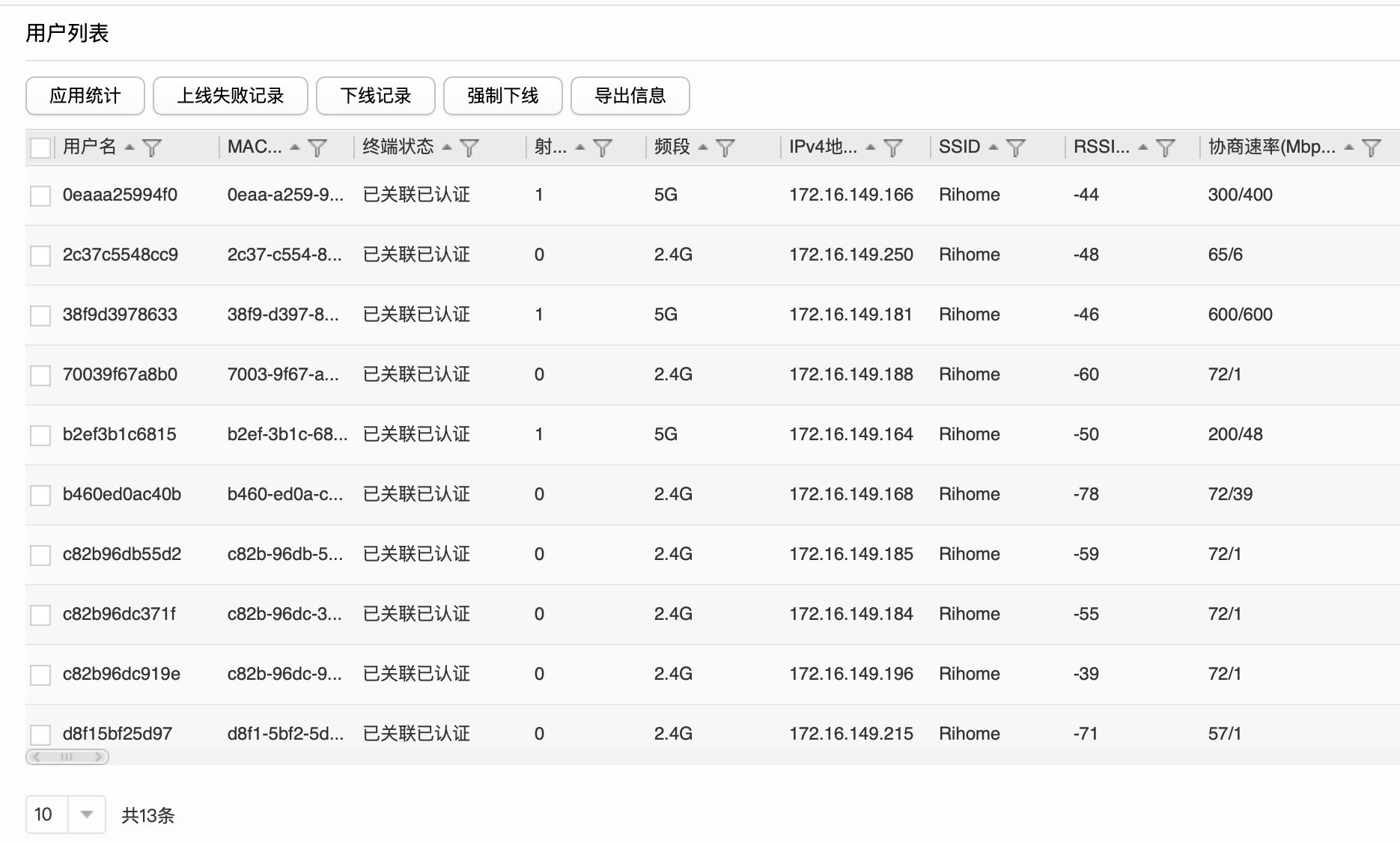 同时真正的主要WiFi AP本身就是有就是有审计功能的。每一个连接在主要WiFi AP上的设备都有一个独立的标识: