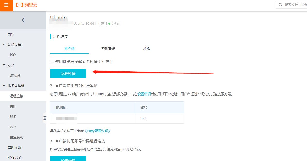 一、开通好阿里云轻量服务器之后在服务器运维-远程连接处进行远程