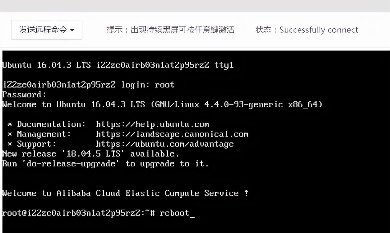 六、输入reboot命令,重启服务器