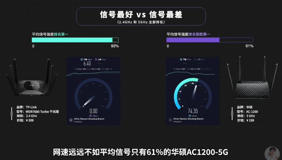 信号最好的TP-WDR7680的网速,还不如信号强度倒数第一的华硕AC1200-5G。