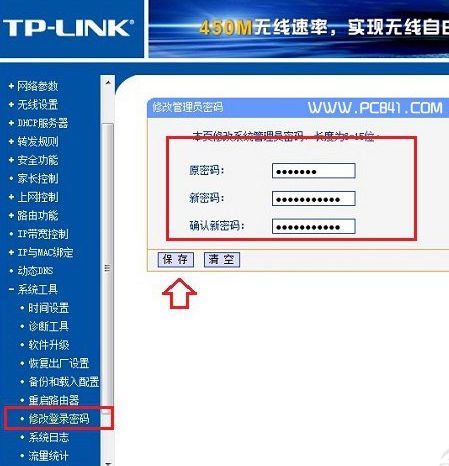 2、登陆TP-Link路由器管理设置界面后,点击菜单中的的【系统工具】-然后再点击【修改登陆密码】,根据指示填写新的密码保存即可。