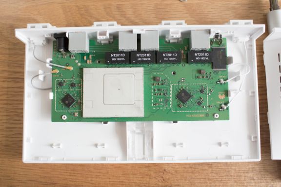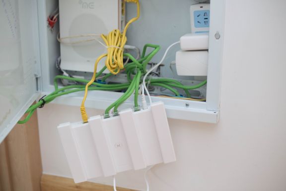 当然你也可以把它直接塞进弱电箱内部,我家的弱电箱尺寸并不是很大,很多路由器都无法塞进去,但是WS5200四核版展示了什么叫小巧灵活。