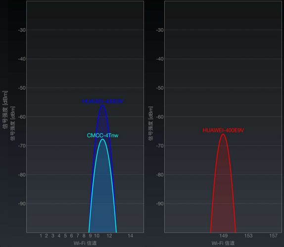 在位置A测试时,2.4G(蓝色)和5G(红色)基本都是满格。