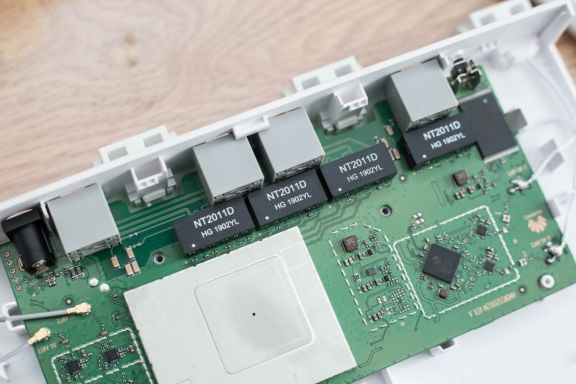 4个千兆网口还支持网口盲插技术,这样你就不用去一根根整理弱电箱里面的网线了,直接插上就行,安装起来非常的方便。