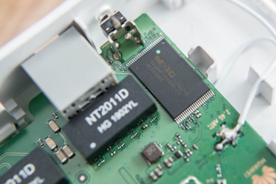 金属屏蔽罩是直接焊接的,手残党表示只能放弃,内部应该是一枚4核心CPU芯片+一枚交换机芯片的组合,没法展示给大家看了。