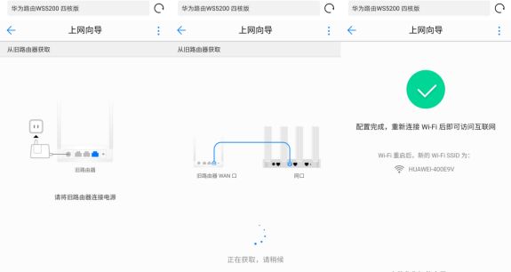 路由器第一次开机配置,会有这么一个提示,你可以一键从旧路由器获取网络配置。
