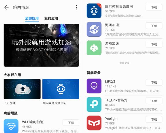 我选择WS5200四核版的最后一个原因,就是看中了华为打造的智能家居生态环境。相比小厂家,我觉得大公司对这种额外服务投入的预算会更充足,而且目前家里的西门子,美的等家电都已经能连入HILink,刚好用上。当然,听说这个路由器可以加载插件也是一个重要的原因之一,哈哈哈。