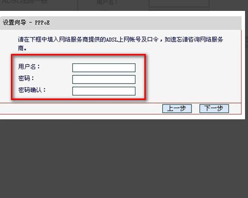 7、输入从网络服务商申请到的账号和密码,输入完成后直接下一步;