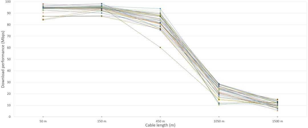 比如,同等条件下(全部接入NBN的光纤到楼宽带)的穿墙测试,只有26%的无线光猫可在2.4GHz频段下达到10Mbps,而40%的设备在5GHz下可以达到80Mbps。