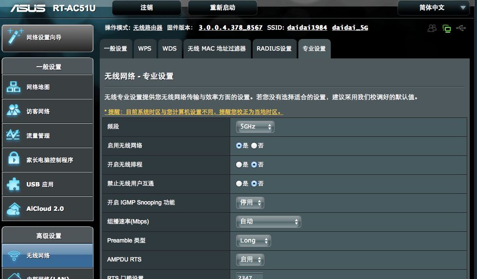 以华硕路由器为例,进入设置界面后可以在“高级设置”-“无线网络”-“专业设置”界面中找到“启用无线网络”的设置项。