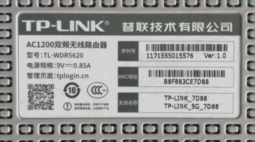 2、在楼上路由器底部的贴纸,查看管理地址(登录地址)、默认的WiFi名称和WiFi密码,找不到的信息可以去说明书上寻找。