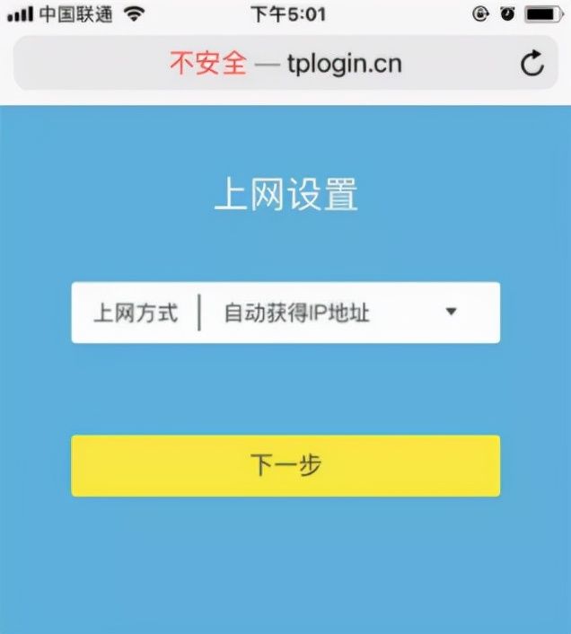 4、在手机浏览器中输入登录地址,进入到这台路由器的设置页面,并按照页面上的提示进行设置。