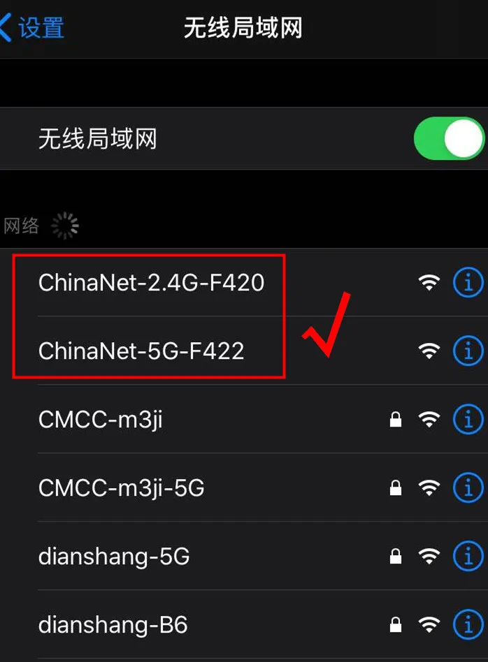 等路由器的指示灯常亮正常闪烁之后,可以打开手机的无线局域网列表,如果能在WiFi列表里找到路由器的默认WiFi名称,则代表路由器恢复出厂成功(路由器默认WiFi名称在路由器的底部铭牌有写),如果WiFi名称还是原来的没变化的话,可能是操作步骤不对,可以再次重复操作一次。