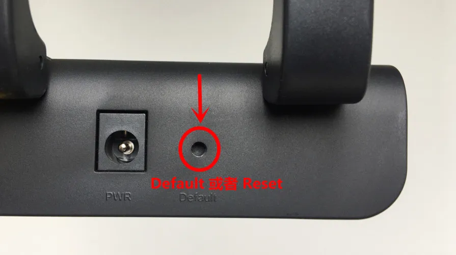 先确保路由器插好电源,找到路由器电源孔旁边的Default或者Reset孔,然后用我们准备好的牙签或者笔尖,稍微用力插进黑色小孔里,保持这个动作3-5秒,直到路由器的指示灯全部亮起来,然后再松手,静等十几秒让路由器系统重启。(*注意:Default或者Reset孔这两个孔都是恢复出厂的孔,不同型号路由器会有所不同;往里按压的时候感觉往里进了一点或者有按压声音那就是正确的操作,反之可能用力太小了。)