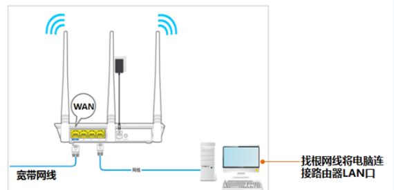 2.将宽带线接到路由WAN口,在用一根网线,一头接电脑一头接路由1/2/3接口任意一个。