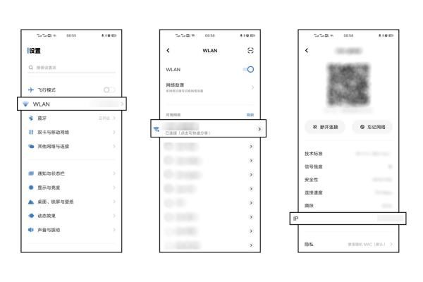 1、进入设置--WLAN--点击已连接的WiFi--IP--查看IP地址;