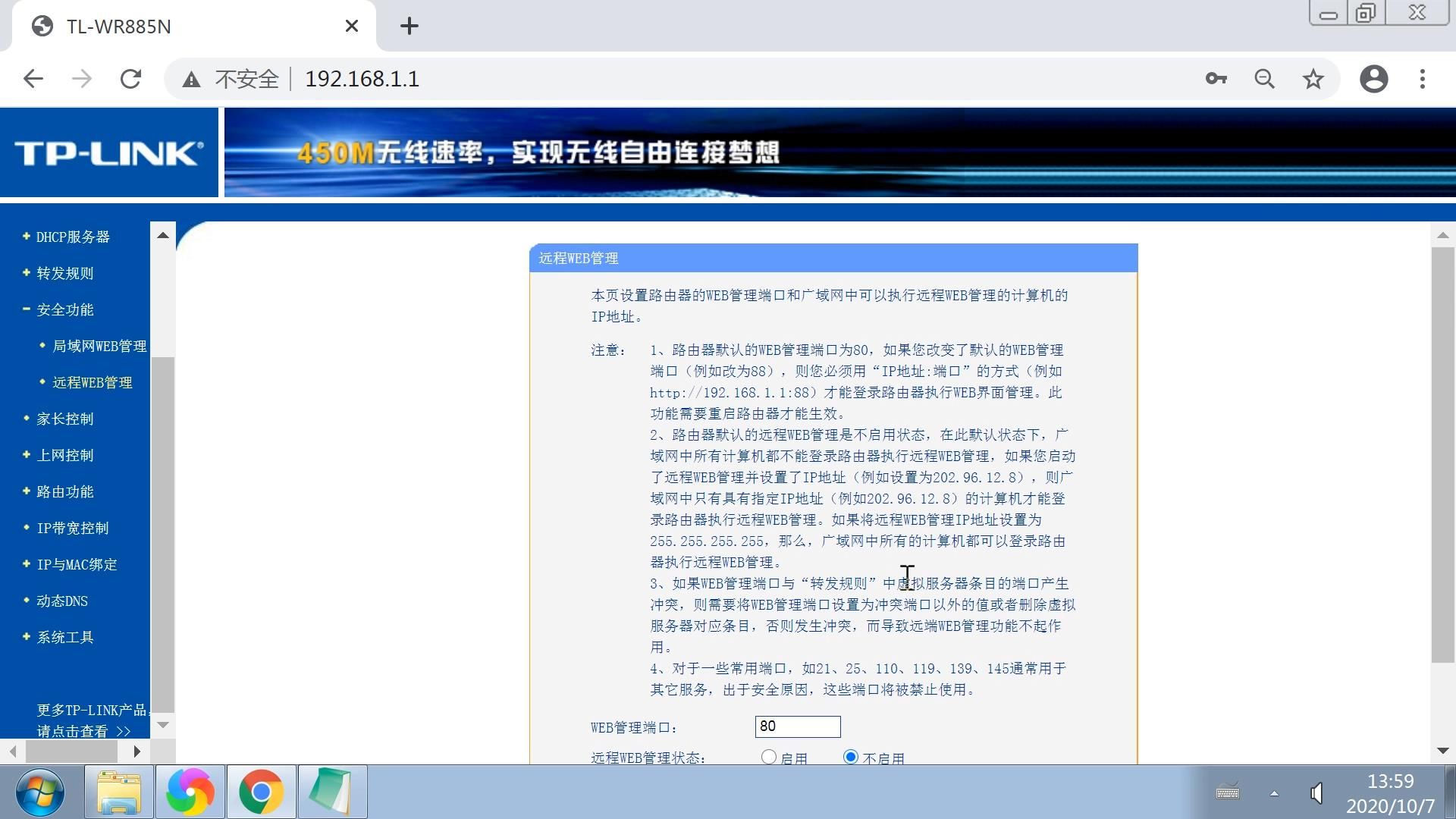 我们首先进入路由器的界面,然后找到远程Web管理,把这个功能选项打开。
