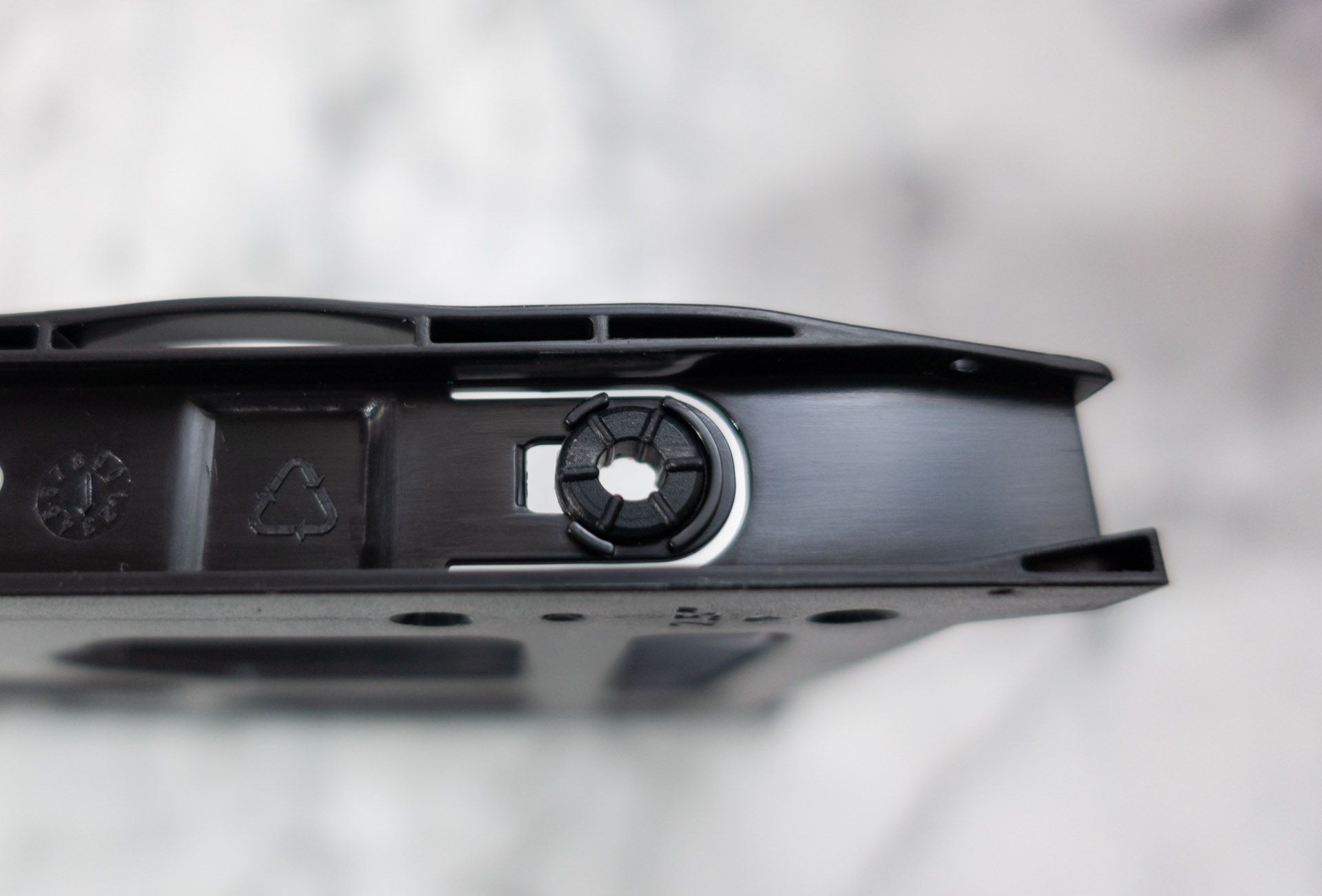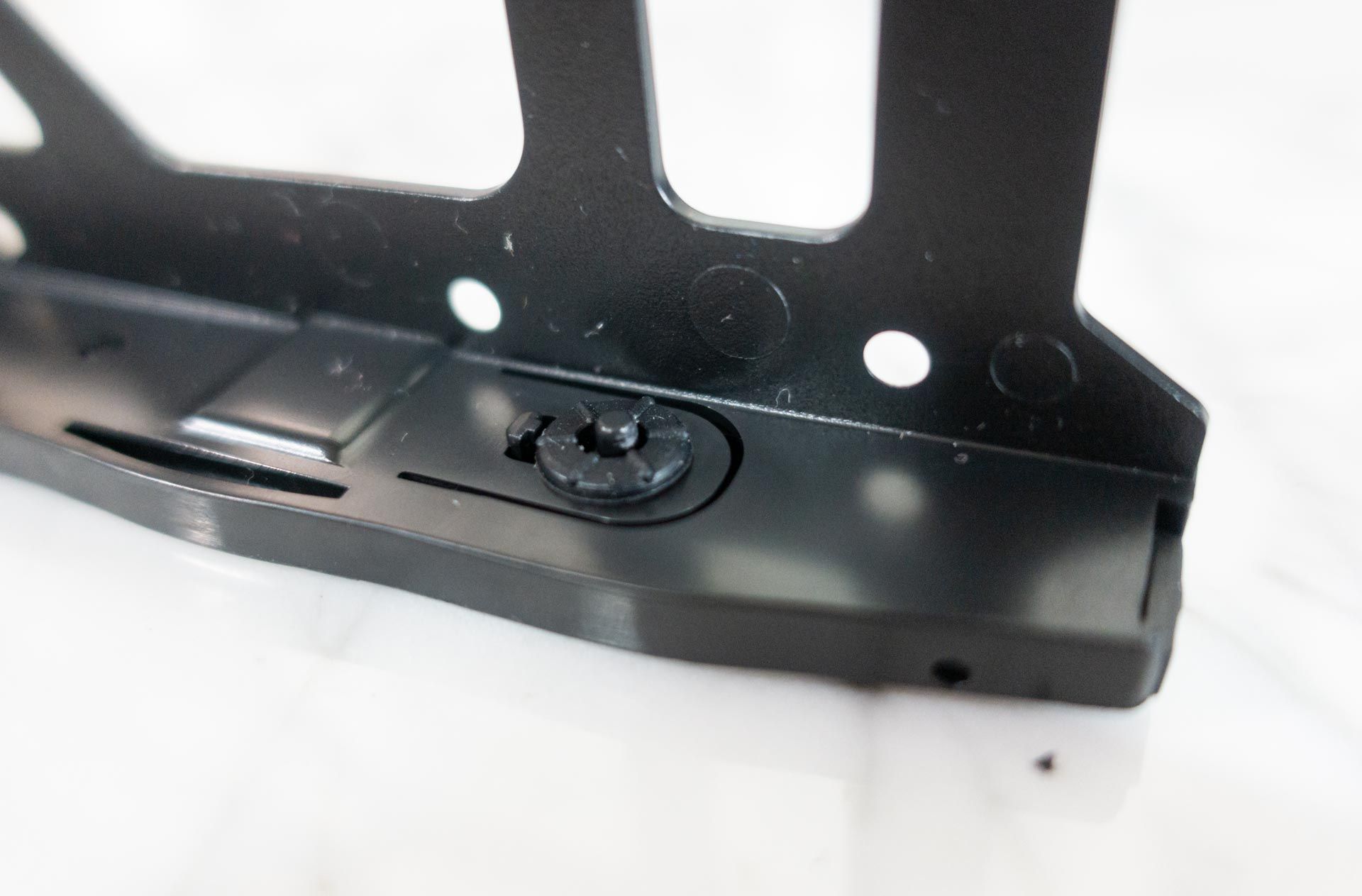 试安装一下可以从内侧看到模拟了螺丝固定,并且一圈橡胶垫片也减轻了硬盘的物理振动。
