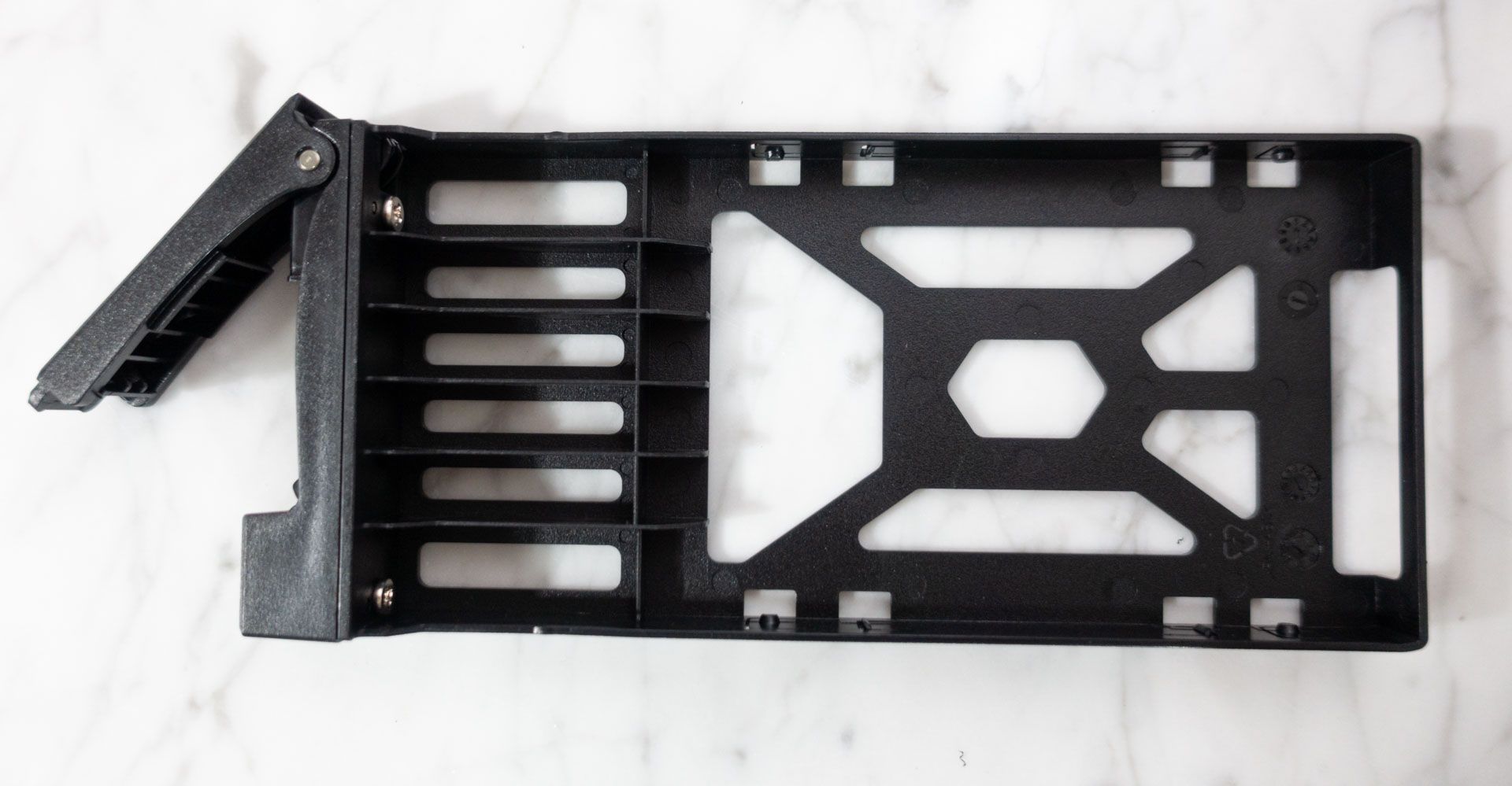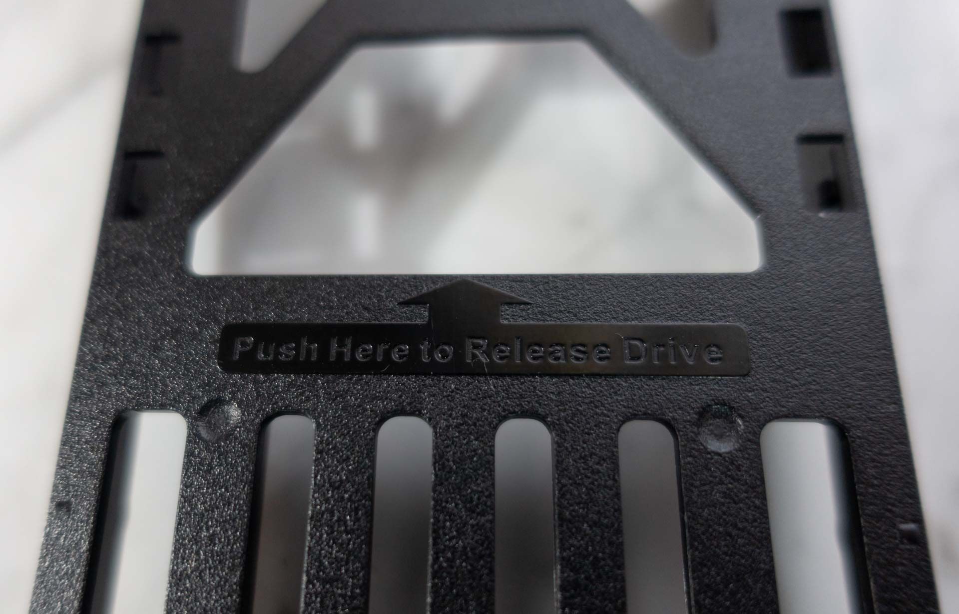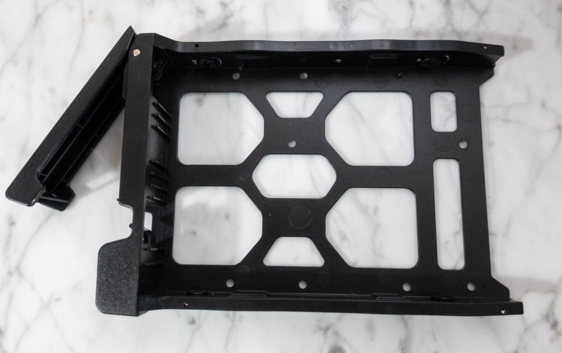 3.5寸硬盘托架是塑料的,比较结实,而且镂空部分非常多,有利于散热。