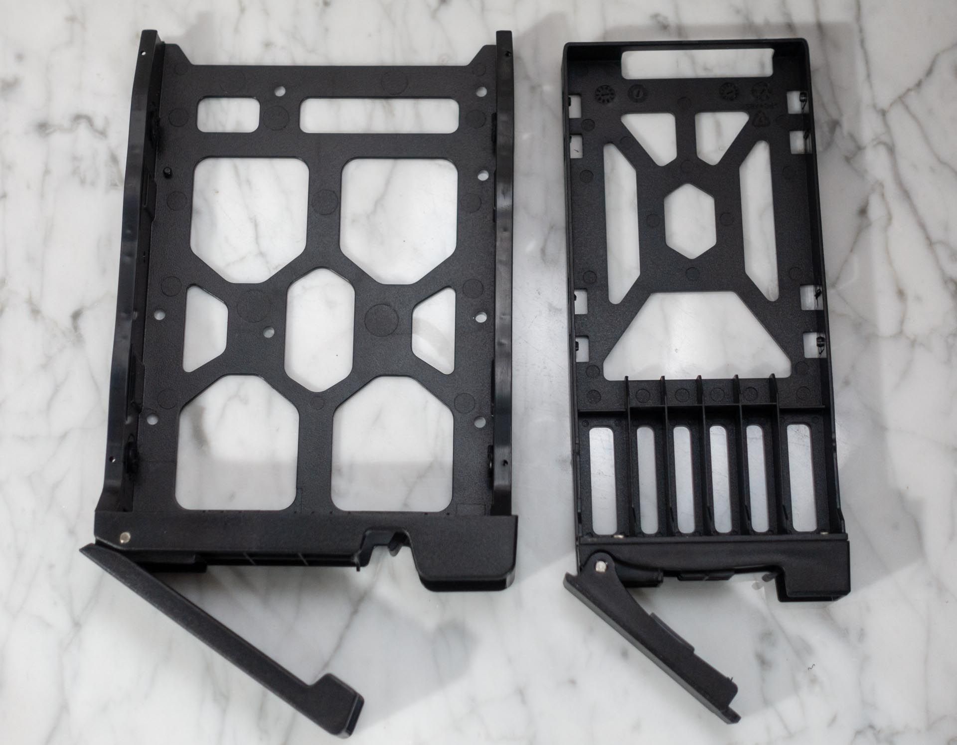 一开始看到这种五盘位的NAS时,我还不太习惯,以往都是习惯2盘位,4盘位,甚至更多3.5盘位的传统NAS。以前的机械硬盘满足千兆网络是绰绰有余的,想到现在可以接触万兆网络了,那么SSD盘位是必不可少的。这种3+2的空间结构设计在原有体积不怎么改变的情况下,可以继续利用固态硬盘扩充。