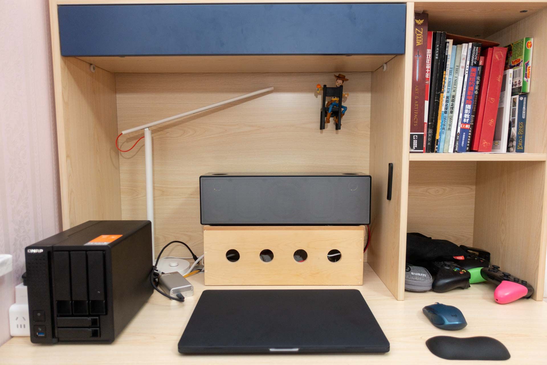 如果要体验万兆网络,暂时先将TS-532X放在桌面使用,可以直连MacBook Pro,体积较小,也不怎么占位置。