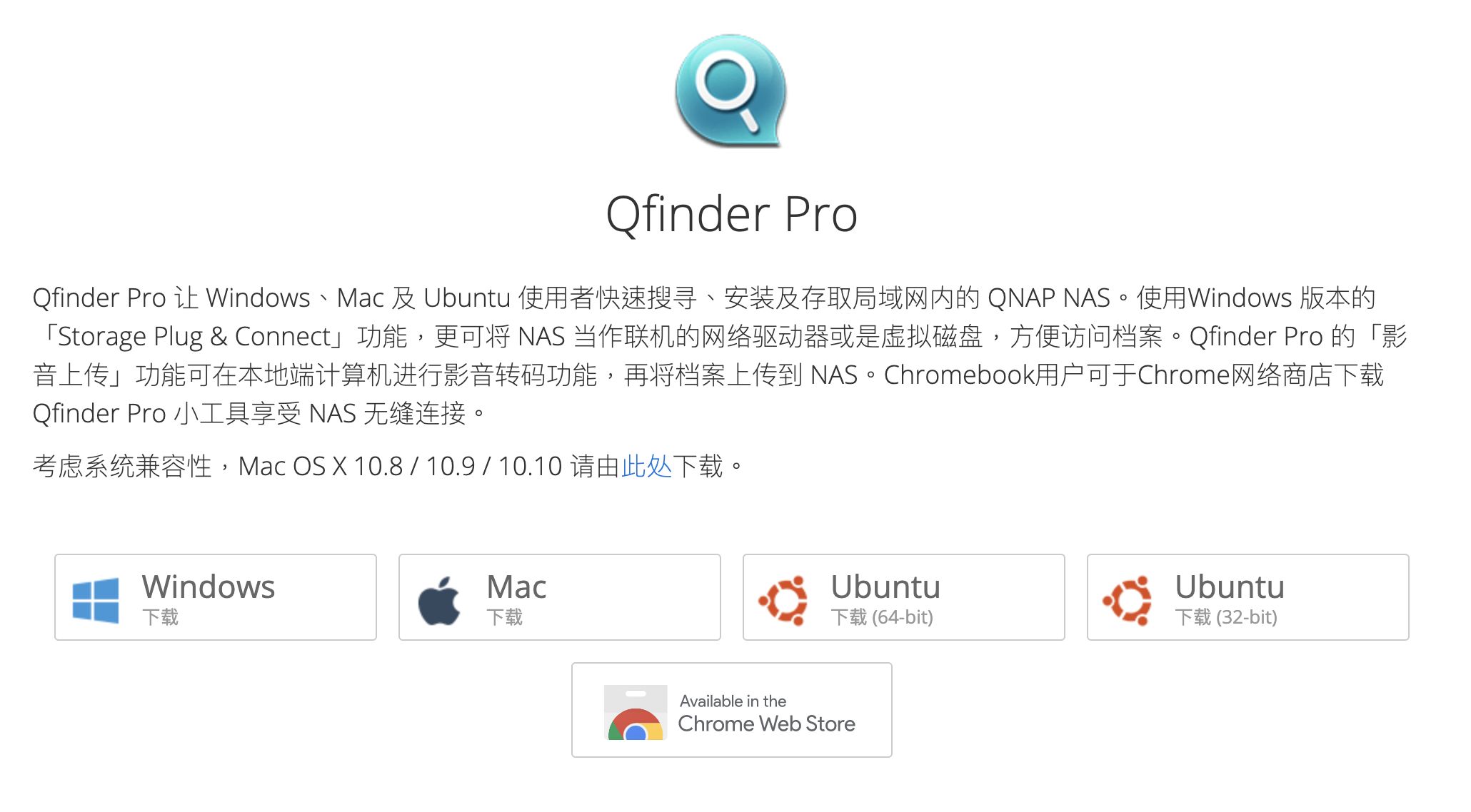 初次安装威联通系统可以上官网下载Qfinder Pro客户端,许多平台都支持。