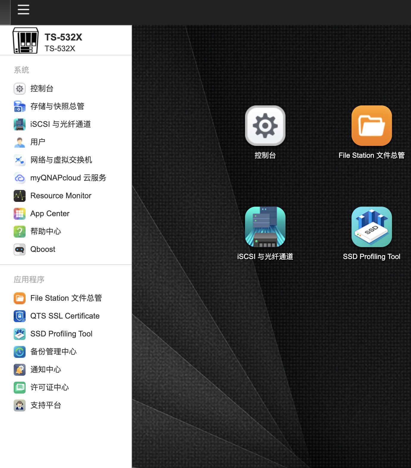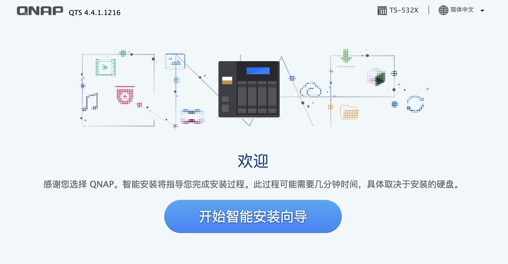 一会系统就安装成功了,图形化界面还是比较易懂的。最早用TS-453Bmini的时候,主要是被里面的各种设置选项绕晕了,后来玩了几个月的unRaid,回头看威联通的系统也变的相当简单了,其实按引导步骤来仔细看文字都能看懂,就有点像看富坚的《猎人》,后期漫画一个画面80%的篇幅全是文字,许多人都没有耐性了,但是精华内容也全在里面了。不过还是希望威联通在未来的系统里能更注重人机交互,降低新人门槛。好处是这种成品NAS系统怎么折腾都很难玩坏,之前unRaid里摸索各种设置导致系统崩溃重装了十几次。