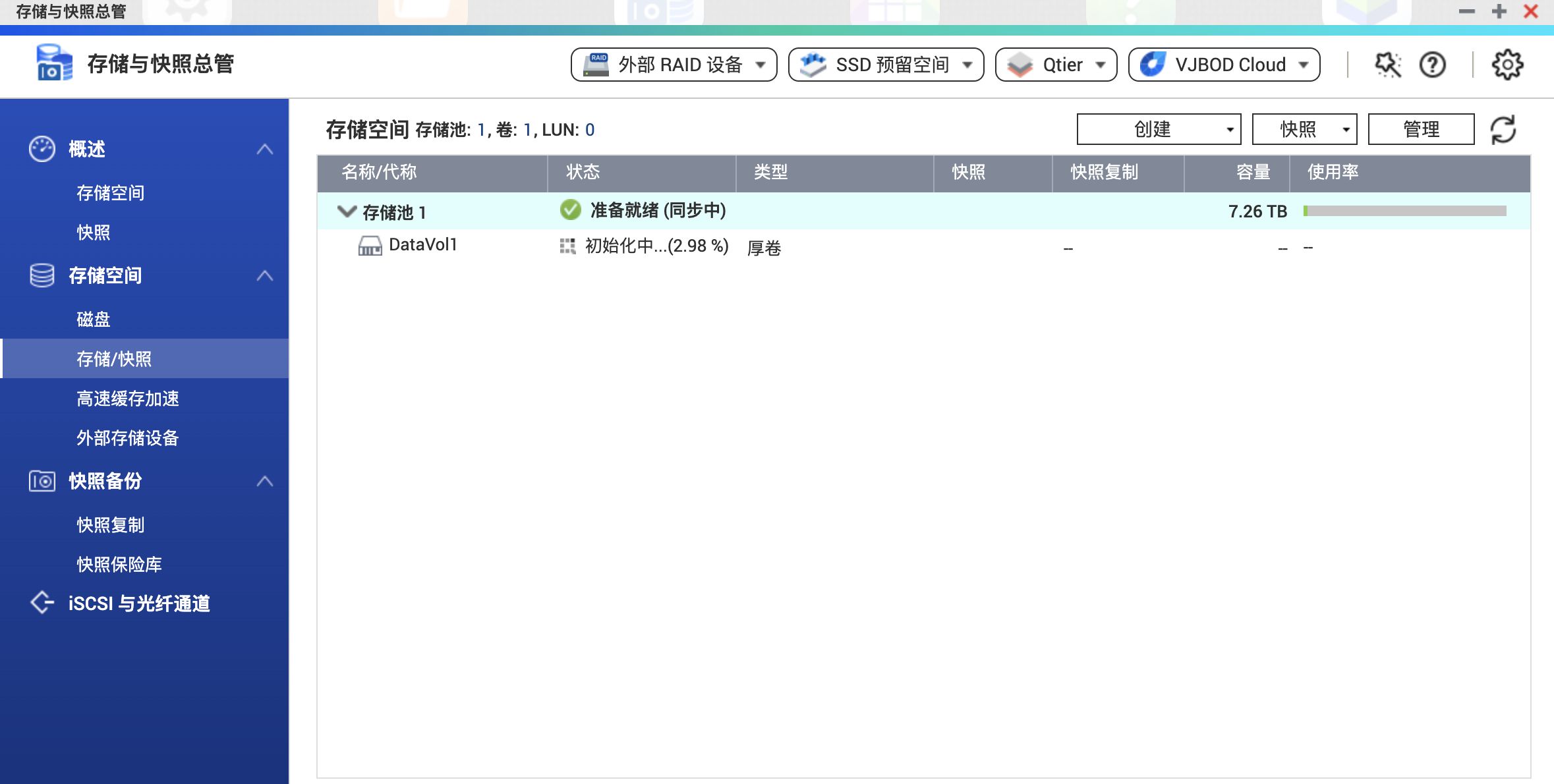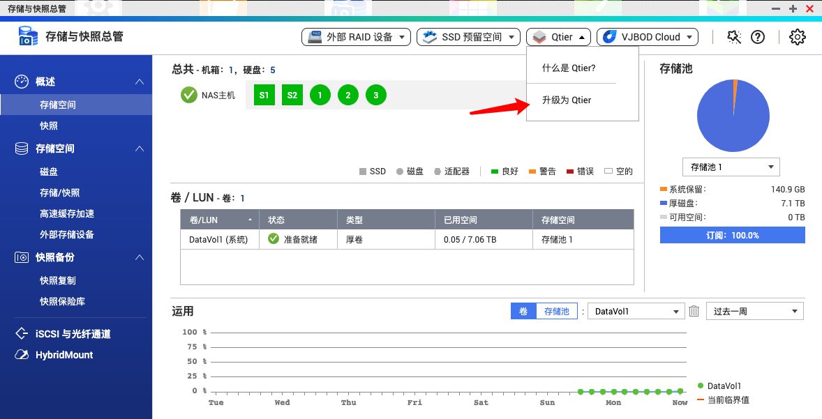 可以看到存储池旁边多了一个小方块代表升级了Qtier。