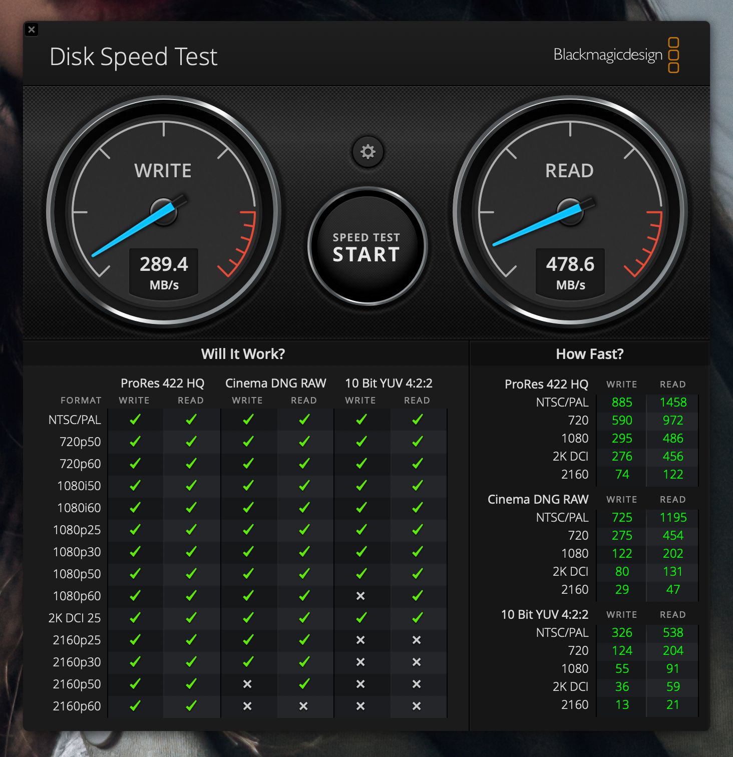 那么,我们先来第一次测试,直接打开测速软件Disk Speed Test,选择share文件夹,得益于RADI5模式是多机械硬盘同时读写,写速达到了289M,读速达到了478M,这是我第一次突破局域网千兆速度,平时对于100M+已经很满足了,现在这个速度非常惊喜。