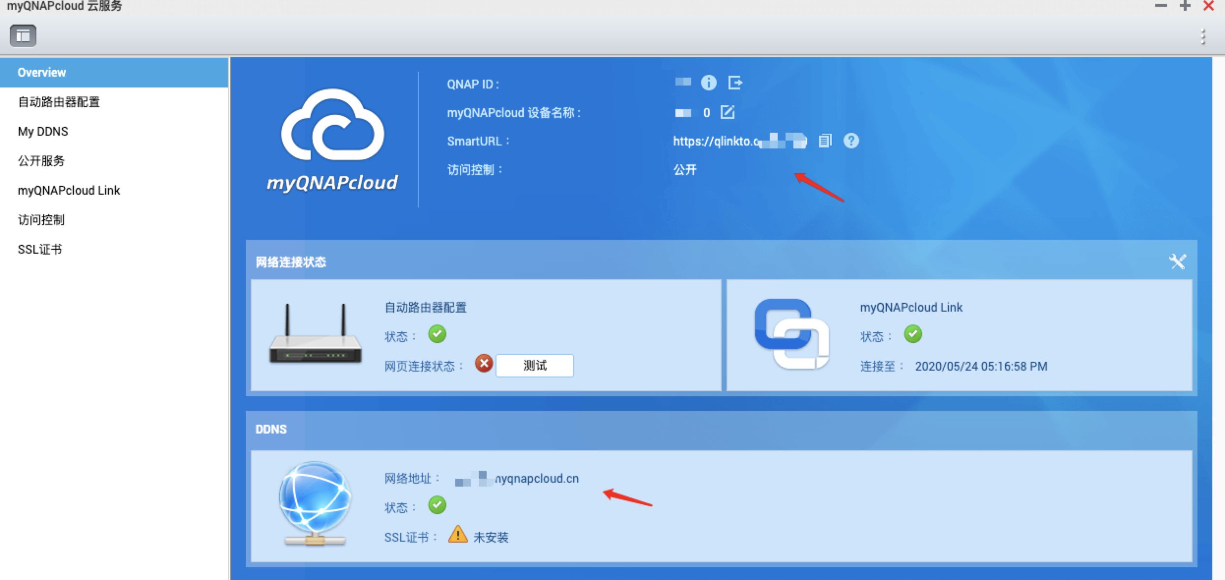 我建议平时就用SmartURL来使用,非常方便,尽管是经过了一道中转服务。不过依然有许多人的网络条件没办法申请到公网IP,威联通这种方法相当于直通车,省时省力,有许多不愿意折腾的人可以很轻松的享受外网服务功能。