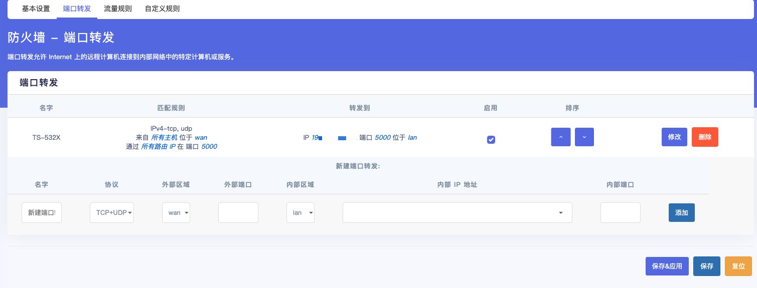 路由器内的端口转发都是大同小异的,比如转发到外网的5000端口。