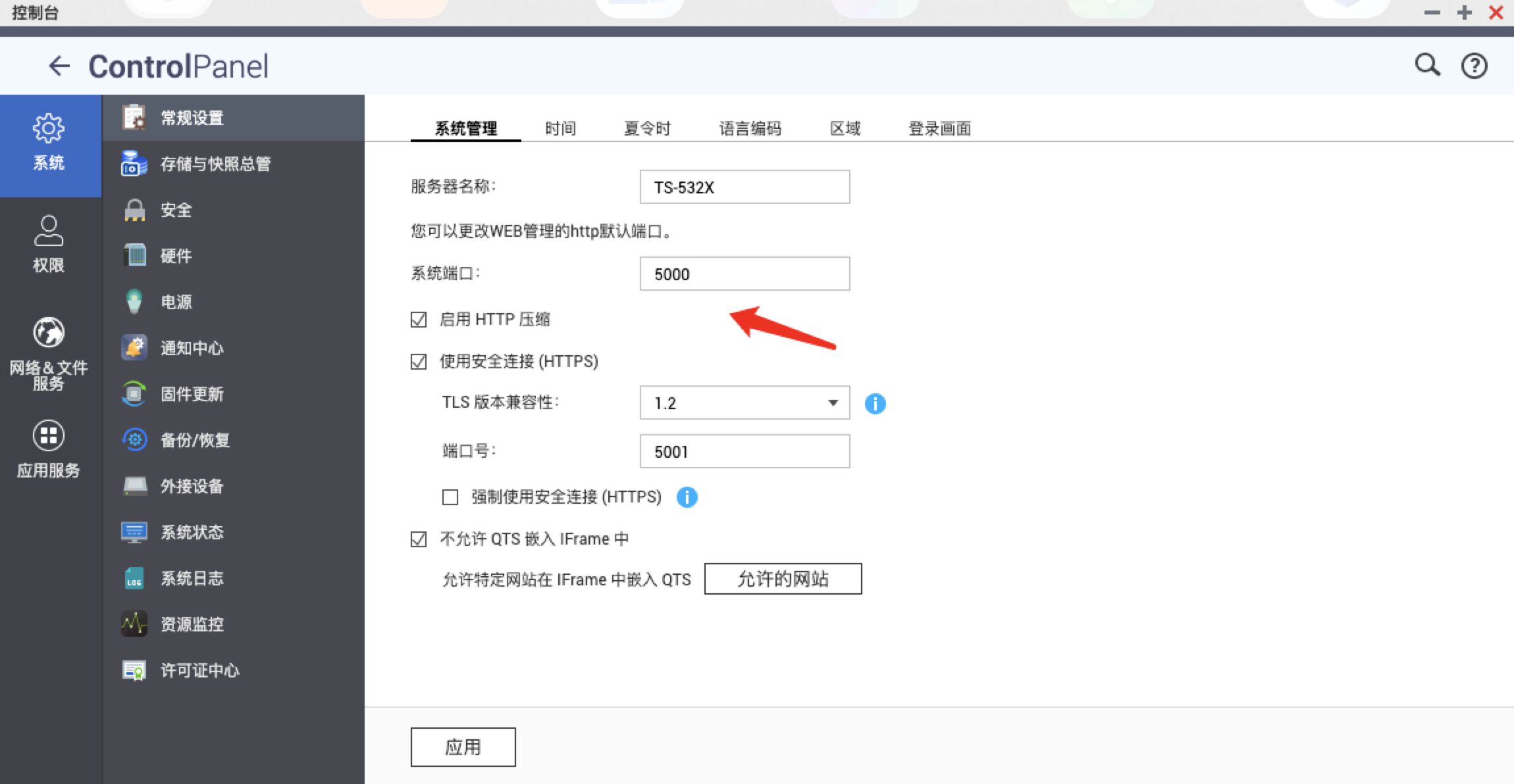 下方的DDNS也有个网络地址,如果通过这个网址访问就需要做端口转发了,在控制台-系统-看到系统端口,默认5000,可以随便改个好记的数字。