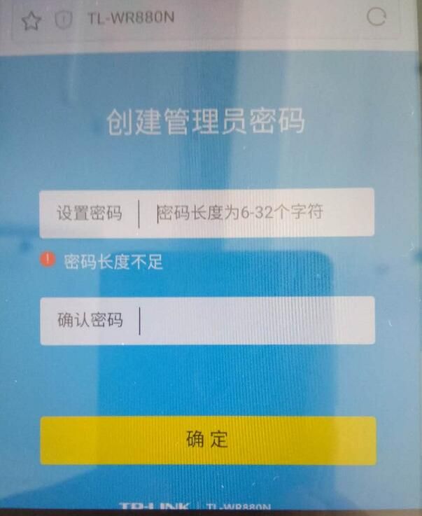 登录路由器管理页面后首先需要创建管理员密码,用以登录该路由器管理页面。