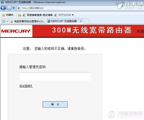 在已经连接上水星路由器的电脑上打开浏览器,然后输入水星路由器登陆网址:192.168.1.1 完成后按回车键确认打开,之后需要我们输入管理员密码,输入路由器管理员密码即可登陆了,如下图所示。