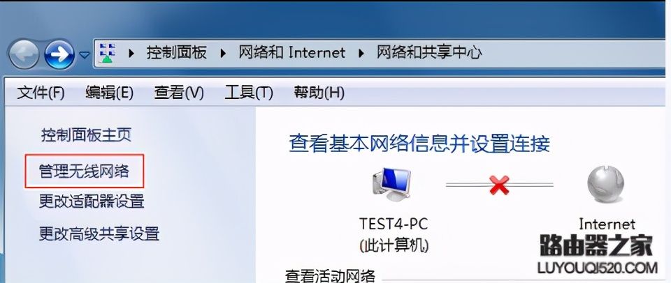点击电脑右下角无线信号的网络图标 ,点击 打开网络和共享中心,找到并点击 管理无线网络,如下图所示: